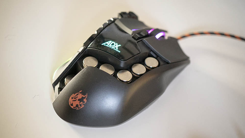The mouse itself is wired, with a braided yellow and black fabric for protection from sharp edges of your desk. The ADX Firepower M04 is plug and play, making this very easy to setup. Everything is controlled by the mouse itself, including the up to 8,200dpi switch and RGB light setting, although this only controls the scroll wheel colour.