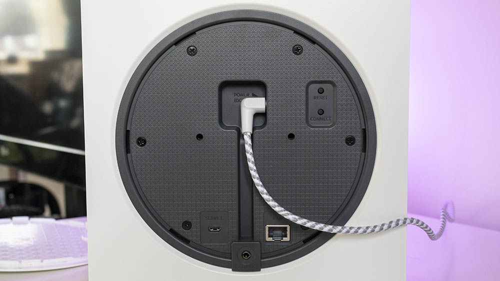 It also comes with an included wall mount, which once on the wall, slots inside the covered rear panel. This speaker is shaped so intricately that it definitely deserves a place on display in your home. Be wary though, the plug’s cable is only around two meters long, and it’s hard wired into the adapter end. Take even more note, that if you mount it to the wall, plugging a cable into the 3.5mm aux becomes impossible.