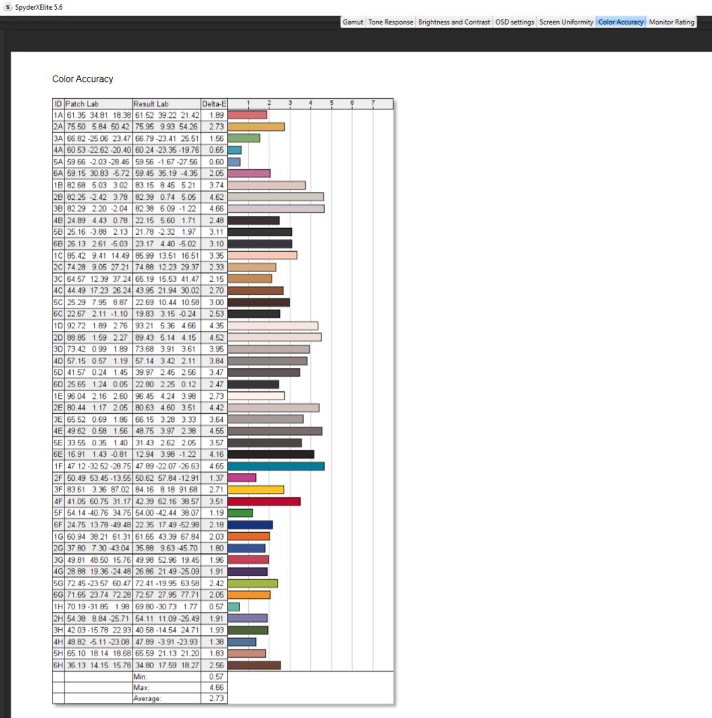 Diving into a calibration test, I ran it twice. Once before any kind of colour calibration had been done, and once after I had calibrated the colour. For the most part, the testing was nigh-on identical. Dell claims the Alienware AW2523HF has a contrast ratio of 1000:1, which is pretty on par with my findings. The contrast ratio was slightly different, with a 1110:1 pre-calibration and a 990:1 post-calibration which I wouldn’t say affected anything to do with gameplay and colour accuracy scored a slightly better Delta-E of 2.73 from 2.66 after calibration. Testing its colour uniformity, there was a hot zone in the bottom left and right-hand corners, which fell in line with what I was getting from the edge-lit LED backlight from the IPS glow present in the monitor. Of course, this is the worst-case scenario, and the image was taken in a very dark room. This had no effect on my gaming or even productivity when using the monitor and was non-existent when using it in my day-to-day life. On here as well you can see that Dell has used an anti-glare coating on the screen, which is probably causing that lack of max brightness but it’s there to stop reflections from being too distracting from lights in your room. Its luminance uniformity was actually very good, I was impressed with the score here and finally, while Dell claimed the monitor covered 99% of the sRGB colour gamut, testing for this pre-calibration though saw a score of 94% and after a calibration. The AdobeRGB score came in at 78%, 78% of the P3 gamut and 73% of the NTSC colour gamut. All in all, not a bad score, but there are definitely better monitors out there for colour accuracy. There’s 400-nits of peak brightness which isn’t too bad. Not enough for HDR gaming by any stretch, though this is an option you can turn on, but more than enough to get you through a game of Valorant. It was a little disappointing in this area, unfortunately, and I am someone who does prefer a much punchier monitor when it comes to brightness, even if it means losing out on some colour accuracy.