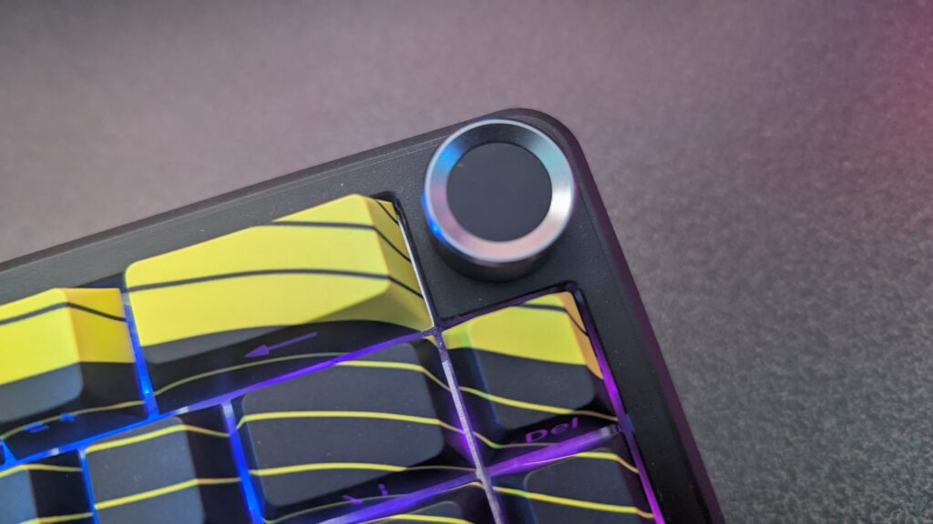 The new Attack Shark X65 comes in two models. The first is their entry X65 HE, and the second is their X65 PRO HE. To get it out of the way, the standard model looks more like a traditional keyboard. It’s got a white escape key, space bar and enter key. The X65 HE is wired while the X65 PRO HE has three modes of connectivity, being wired, 2.4GHz dongle or Bluetooth, and, as well as the colour schemes as the PRO comes in a fontless-wave-like pattern, oh, and a volume knob on the top right-hand side, are the only differences between the two. With that, we’ll mainly be focusing on the PRO HE version of this keyboard in this review.