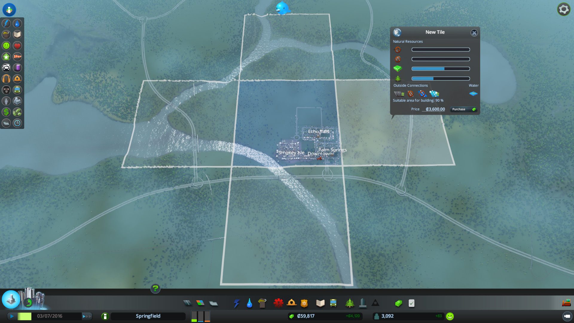 Water and power now rely on powerlines and pipes to be built around your city which is a great feature. It enables you to think about item placement rather than just one factory in the corner of the map.