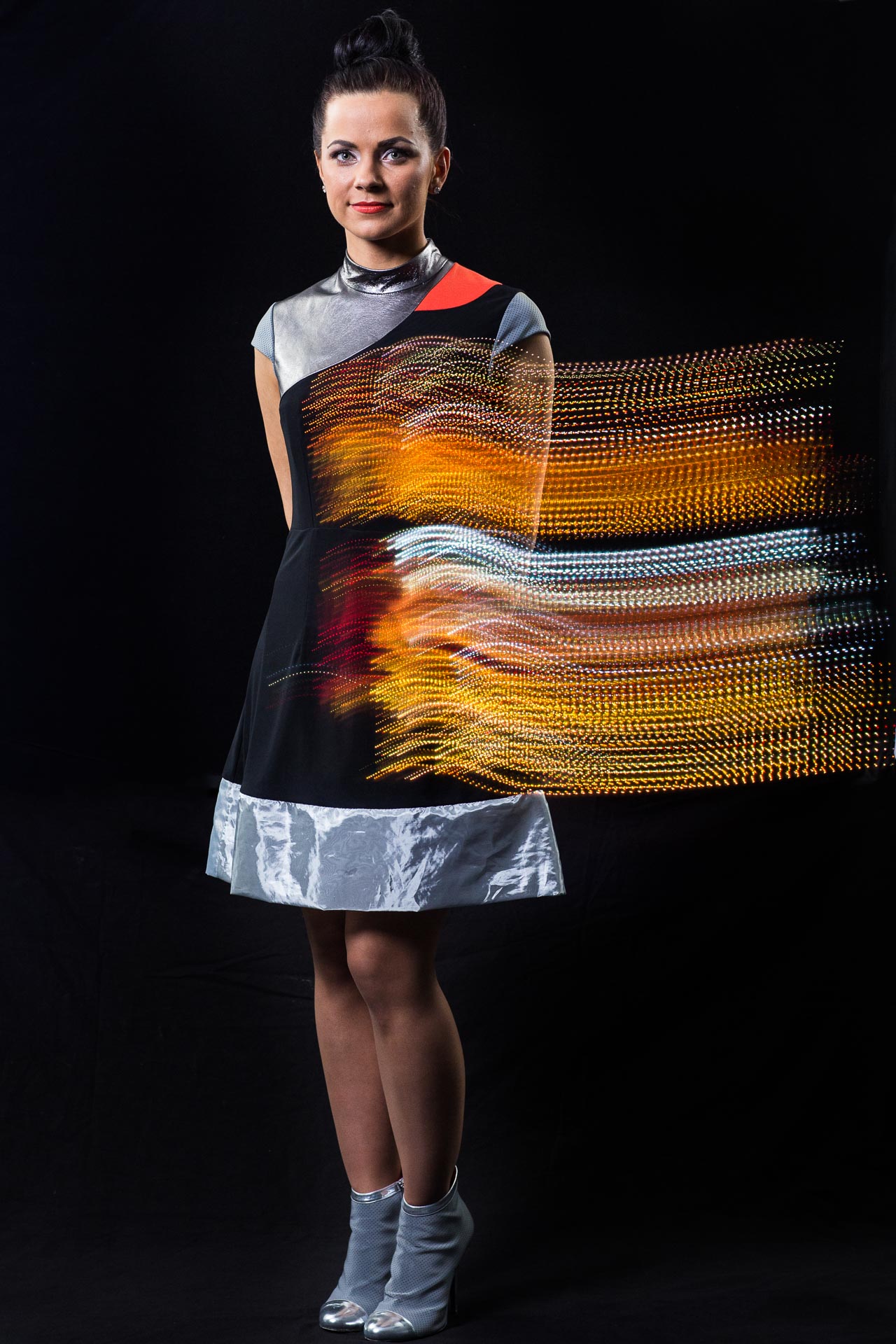 - LEDs on shoulders and illuminated hems to provide additional lighting in an emergency