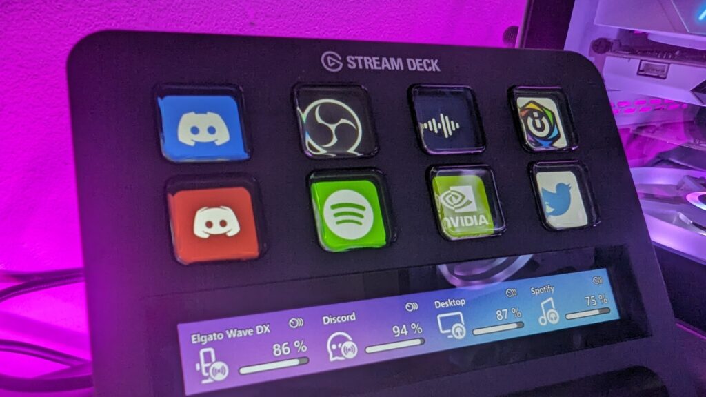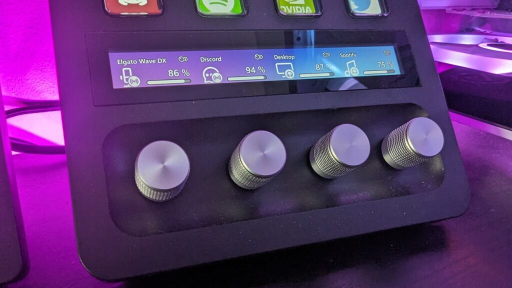 So let’s talk about the Stream Deck Plus first. It follows suit of its older siblings, retaining the eight physical LCD button screens that can be programmed to various functions on your desktop. The buttons are nice though they do feel a little squishy when pressed. The standout feature over other Stream Deck products though is the inclusion of four dials at the bottom and touch bar, of which can be directly linked to your Wave Link software, or used as independent dials. They do rotate in increments and have a satisfying click to them when rotating. Now this is what Elgato wanted to point out to me in this regard over the GoXLR. With the GoXLR, you can use virtual audio inputs that can be assigned to the physical sliders on the mixer. Here with the Elgato Stream Deck Plus, you can use the Wave Link audio software, to install multiple virtual audio inputs onto your desktop, assign them a slot inside the Wave Link software, and then tell the Stream Deck Plus which dial you would like to use for which audio input. A bit of a mouthful that, but in reality, it’s actually a very simple process to set everything up.