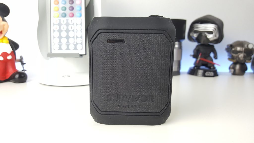 Now there is nothing really new about the Griffin Survivor, compared to other powerbanks on the market. And it certainly isn’t better than the ones we’ve looked at here at TechNuovo like the Besiter Eclipse or the PNY HD5000. What is appealing about the Survivor however is its design. It’s relatively smaller than other powerbanks, and of course offers you 10,500mAh of battery power. Secondly, it’s made from super tough rubber which has been drop tested up t0 6ft. I wouldn’t try that for yourself though, it’s just there for precaution.