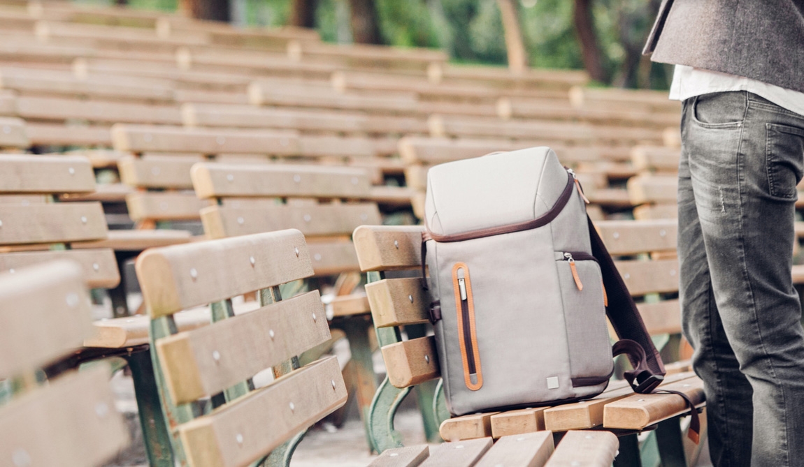 Straight away, I can feel, seeand& smell the quality and premium materials used in this backpack. The backpack comes in two colours, black or titanium grey. We got the latter, which in my opinion, is way better looking than black. It’s very lightweight and resembles the shape and size of your typical backpack. I love the way it looks! It has hints of beige, dark brown and satin silver, which is a perfect combination of modern, meets classy. I’m not going to throw the bag on the ground but the stitching and craftsmanship used, matched with two rubber feet on its bottom, fills me with confidence that this is a durable and robust bag. There are two padded straps on the back, which resemble seat belts. They are that wide!. They’re are adjustable and a cross strap for added support with heavier loads is also present. The back of the bag is padded and there is also a handle at the top, in case you want to carry it by hand.