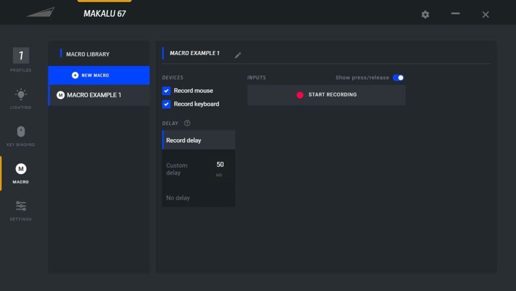 And finally, you can change your button response time too. By default it’s set at 2 milliseconds, which I didn’t change. I want to mention, that I had a few issues with the software when I first installed it. It just wouldn’t open and I couldn’t get the Basecamp window to show. But it changed. I’m not sure what happened. I provided my logs to Mountain themselves, and one day, iti just opened and appeared in my system tray. I’m sure any bugs or glitches will be ironed out by the time this hits the market though. You can see some of the menu options below in the gallery.