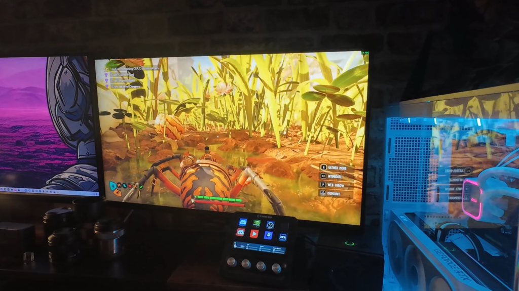 Having local dimming capabilities means that contrast ratios can be a lot wider, and I must say, after testing the OLED panel I’ve just had and now, the image quality achieved between the two to the naked eye is pretty negligible. Sure, the accuracy of OLED when it comes to dark and bright areas on screen is a lot more accurate, and Mini LED suffers from haloing around brighter areas, to me when playing my games, I’ve not noticed it in a massive way. Though there are settings to negate these issues, especially when using the monitor in its HDR mode. It comes with two settings Peak 400 and Peak 1000 with the latter producing a super bright image. Now in HDR, your brightness setting is locked, and you have to rely on your local and halo dimming settings. Local dimming set to Level 3 worked best for me as it produced the most comfortable-looking contrast difference. Set to Level 2 or 1, then highlights start to become really overexposed. However saying this, when I plugged my Lenovo work laptop into this monitor, I turned off all local dimming because it either made the image look far too contrasty on Level 1 and 2, or for some reason really washed out on Level 3. For halo dimming, I set it between 70 and 80 to keep that controlled. I am a fan of a bit of glow coming from bright areas of a scene. but if I turn off halo dimming completely, it becomes really messy. And for the most part, I’ve not really noticed any major issues with haloing in the games I do play anywway. Maybe I haven’t had enough dark scenes in them with smaller highlights to really notice.
