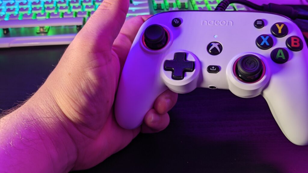 There’s no denying that the Nacon Pro Compact has been designed exclusively with Xbox players in mind. With the button tags and placement, joystick positions, the fact the box screams Xbox at you and all that. I mean, Microsoft does have the most comfortable controllers to date, it’s no surprise Nacon has taken inspiration from this side of the console war. However, it’s much smaller than your traditional Xbox controller, which might be a bit of an issue for some.
