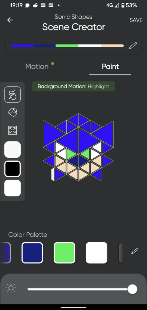 But once that was done, I had a Sonic Nanoleaf Shapes face and it was all good to go. And you know what? It looks wicked. Much bigger than I was expecting looking at press images and the image on the box. It’s super bright too, and was more than enough to light some ambience in my living room, and it wasn’t even on the wall, it was on my review desk. The app again is feature-rich with different scenes, so if you’re bored with Sonic’s face you can match it to your other Nanoleaf panels in a big scene.