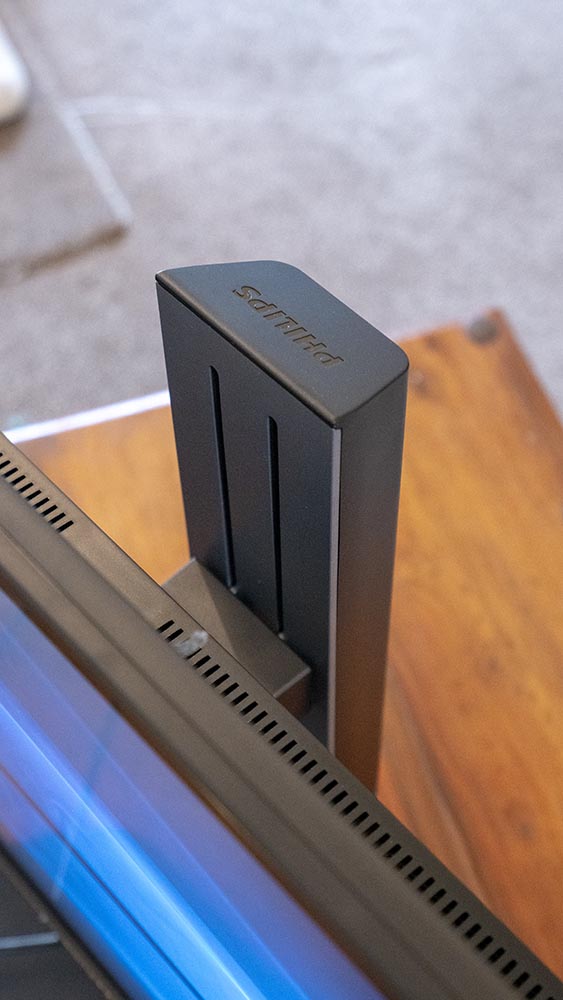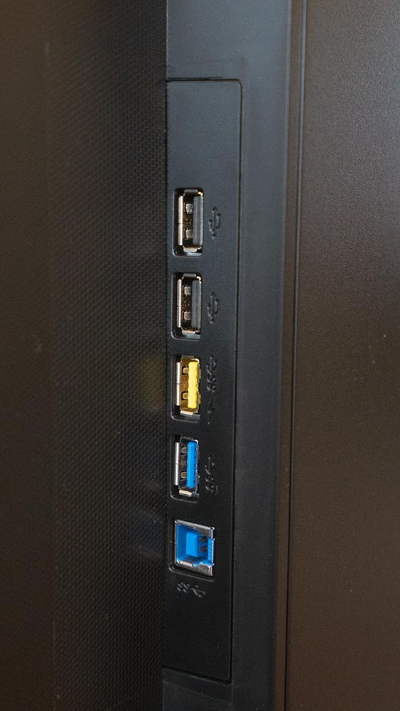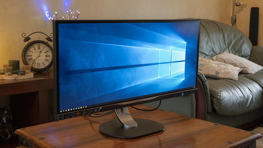 Connections are USB 2.0 x 2; USB 3.0 x 2 (1 w/fast charging); VGA; DVI-Dual Link; DisplayPort; and HDMI 2.0 x 1. In the box you will find cables for D-Sub, DVI-D, DP, HDMI, audio, and power. Putting it together took about five minutes – as usual with the great Philips systems, it took longer to get it out of the box than set up and working. At around 9.5kg, not horribly heavy either.