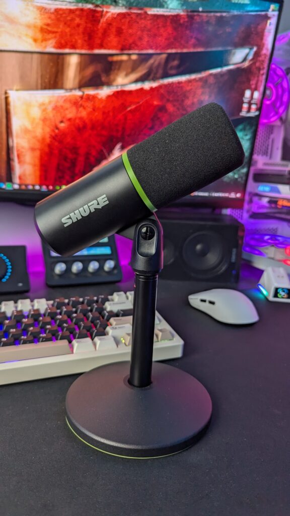 So shure are touting this as a ‘gaming microphone’. However I do think they are selling themselves a bit short here, but I do also understand why they’ve done it. The microphone is incredibly capable and has a lot of control in terms of peaking and compression. Your voice in this thing does sound great, and I must say that if you’re also going to be wanting to create some kind of podcast or even content creation like I’m doing now, as everything you’re currently hearing is being recorded on the MV6 here, you’re going to be able to with this microphone. But, Shure do have their ‘podcast’ focussed microphone already with the SM7, and I think they’re trying to fill a gap here.
