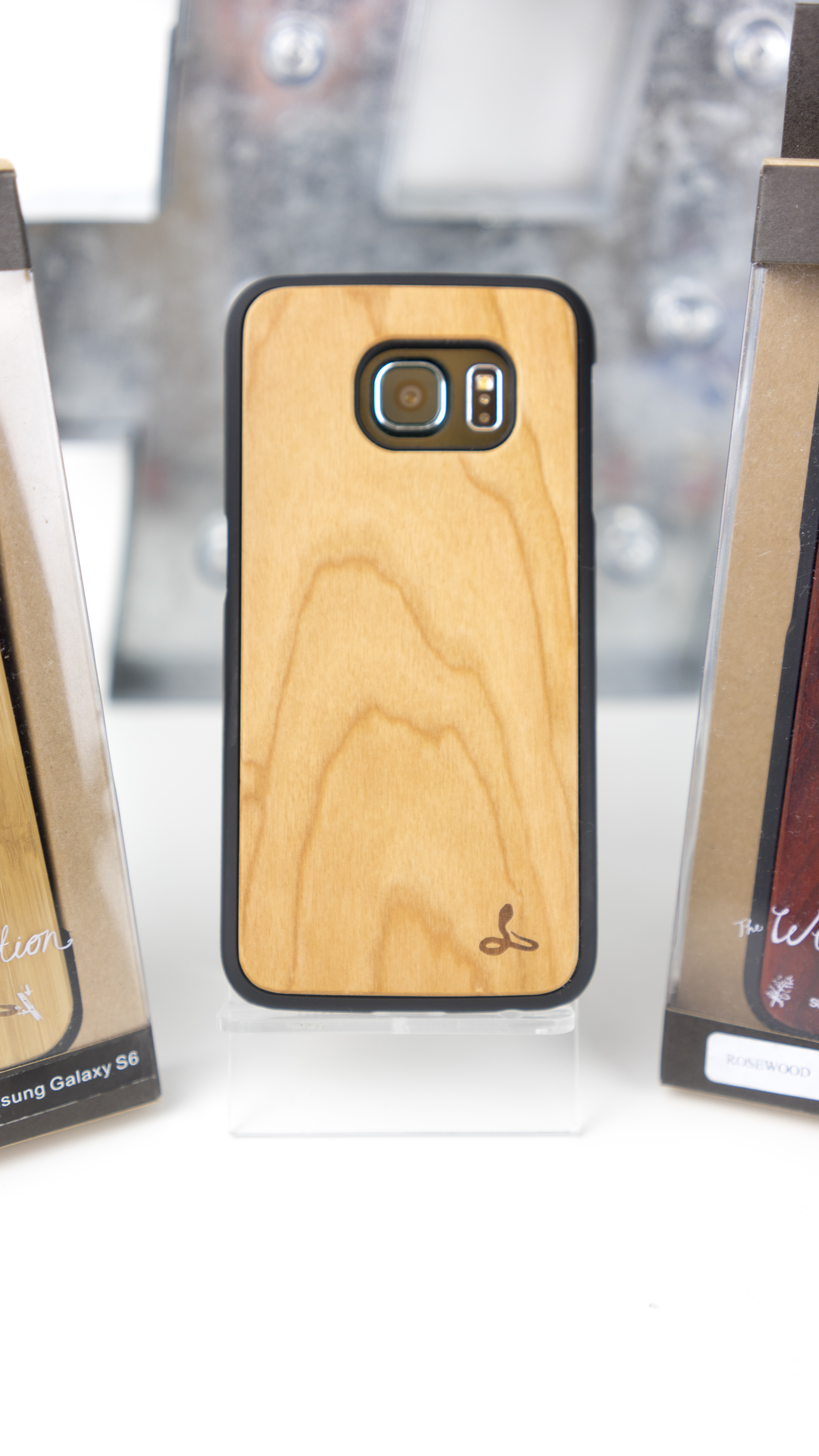 We’ve been sent through a couple of cases for the Samsung S6 and S6 Edge. The cases fit tightly around the bezel of the mobiles, enabling you to still use the side buttons and access the charging and headphone ports with ease. The wooden back does give the phone a slightly slippery touch, so do be careful when handling then device. It’s no slipperier than the Gorilla Glass backplate.