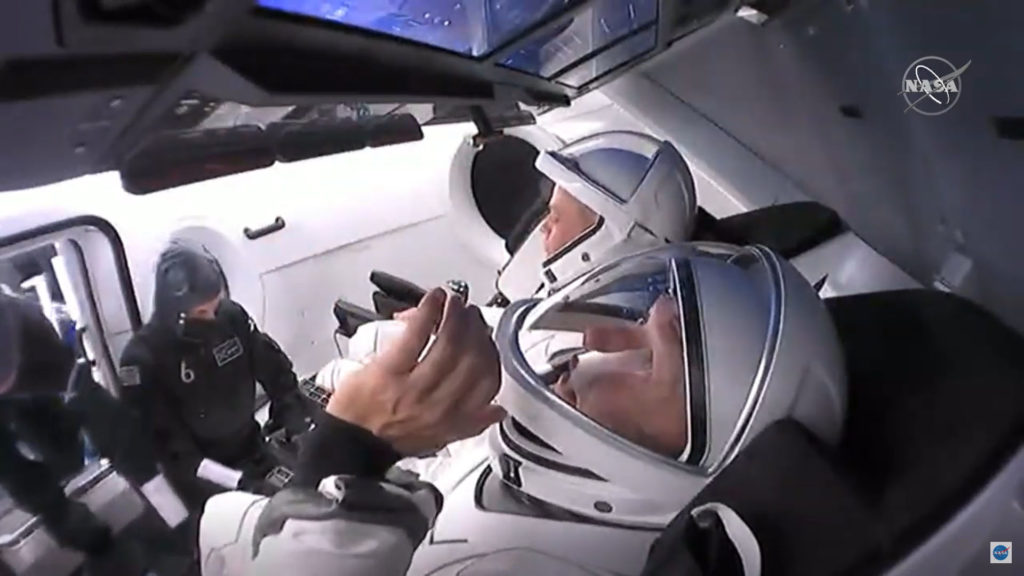 Inside the Dragon captule are astronauts Doug Hurley and Bob Behnken. Everything went really well, with all stages of pre-launch happening on time.