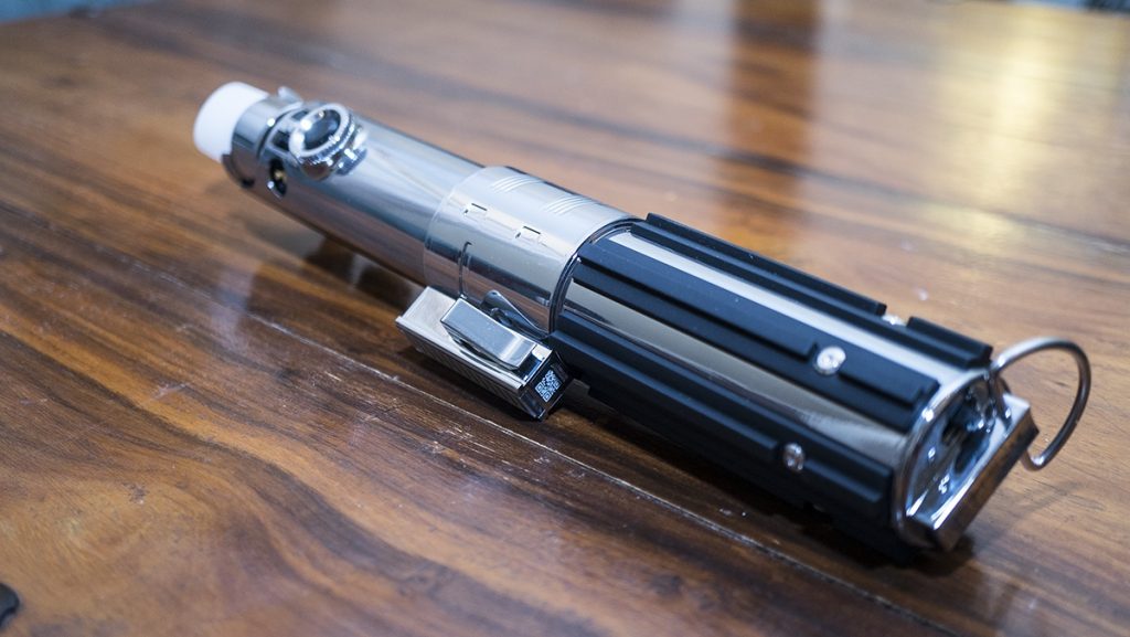 The headset relies on mobile phone power to work, so you need to insert your phone into the supplied tray, hook the two USB ports together and away you go. Well, I wish it was that simple. Setting this up is an absolute chore. There are so many steps and hoops you need to go through just to get the game working. And in our case, we found it super difficult tot get the saber hooked up to our mobile. We were using a Samsung Galaxy S7 during tests, which is compatible, but it just took sooooooo many tries to sync everything. I’m worried about this because tech enthusiasts will just find this tedious, and technophobes will get bored before even getting to the main menu.