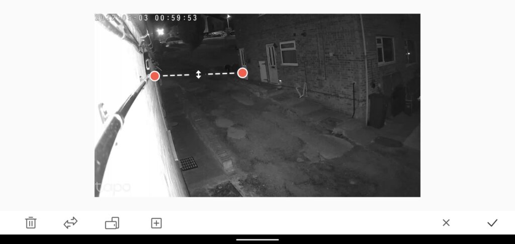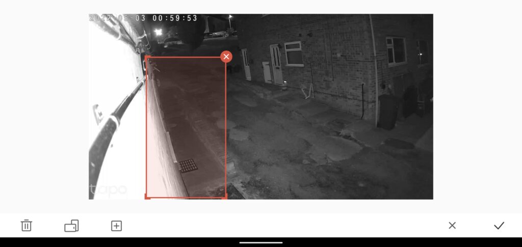 Diving into the extended options and you’ll find things like your camera name, timezone settings, privacy settings if you want to turn the camera off and all that kind of basic thing. But, what’s interesting, is the different detection zones you can set. Motion detection is pretty self-explanatory. AI detection is for detecting people. Line-Crossing detection allows you to draw a line on your feed, so it gives you an alert when something crosses it. Area Intrusion detection allows you to draw a box around an area and finally Camera Tampering is for alerting the user if the camera or cables have been touched or cut. For all of these options, you can choose to have an alert sent to your phone or the alarm to go off. Of course, I set the former, as these detection features can be super sensitive at times, and I don’t want the alarm to go off every time a raindrop floats past the lens.