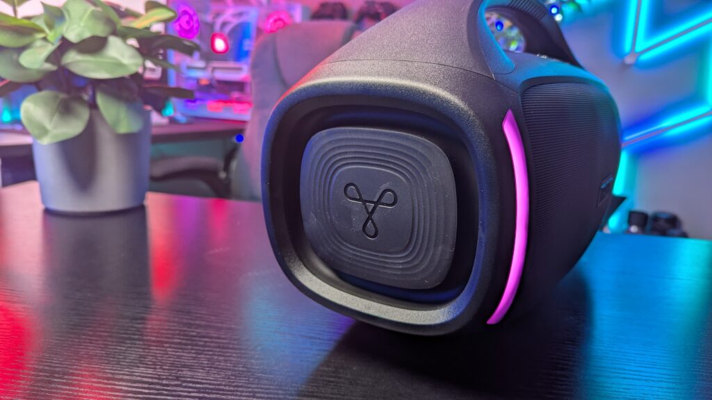It’s got 200 watts total output when it’s mains powered, though does dip to 180 watts when on battery power, and either power method, this speaker is incredibly loud. It’s got 15-watt silk dome tweeters at the top, 45-watt mid-range drivers on the left and right and an 80-watt subwoofer with diamond-shaped reinforcing ribs in the centre. As I said, it’s loud, but that’s not always a great thing. Running this through my Spotify, once it passed that midpoint volume, I did experience a varying amount of distortion depending on what was being listened to. More bass-heavy tracks and the distortion almost made this speaker really hard to listen to. But at a mid-volume, there’s a really nice separation in music, and your bass and treble frequencies sound nice and independent. Mids do get a little jumbled, and vocals can get lost due to the power of the bass, but that’s to be expected I think. Turn off X-3D, and get your bass frequencies lowered just slightly in the app and you’ll be on to a winner. Just check out some examples.