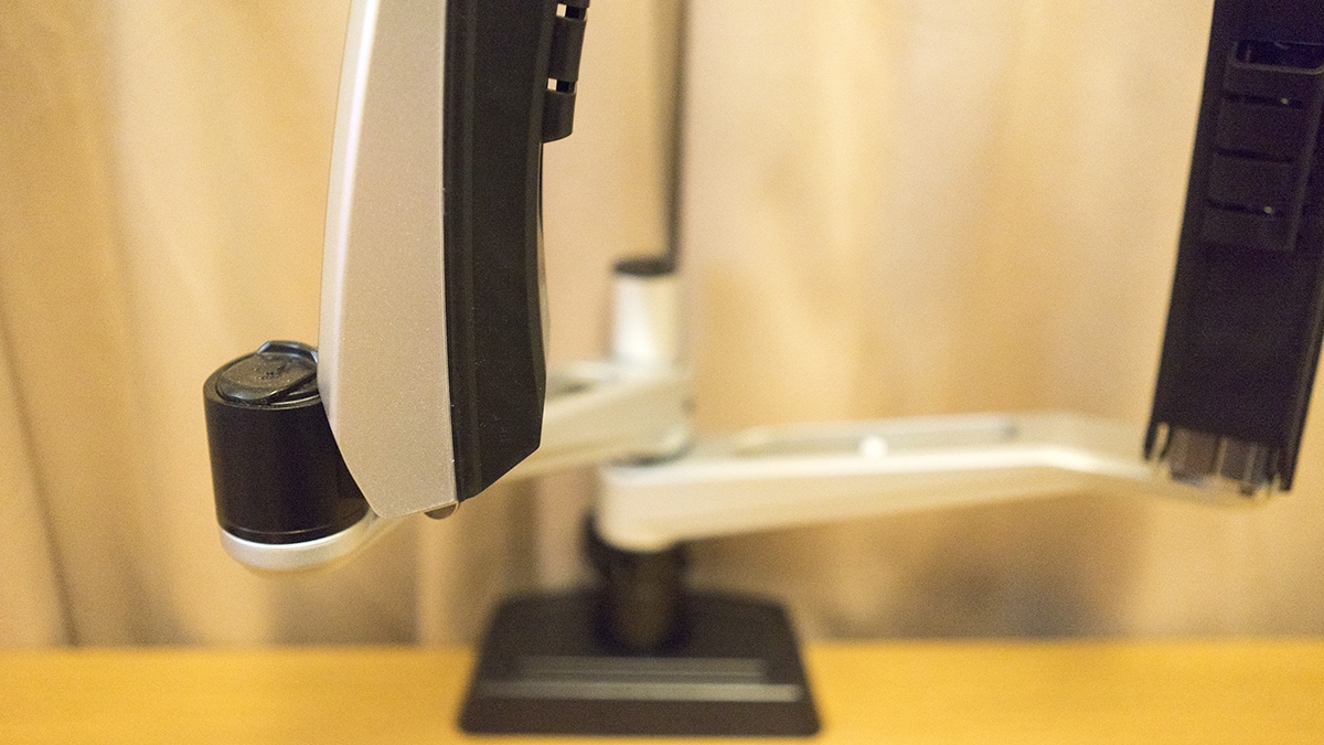 The base attaches to the desk rather easily, with two pressure plates that screw to the rear of the desk so it hooks over. The arms attach together with ease, without the need for attaching screws or fiddling with little allen keys. You’re up in about 15 minutes from when you work out which arm goes where.