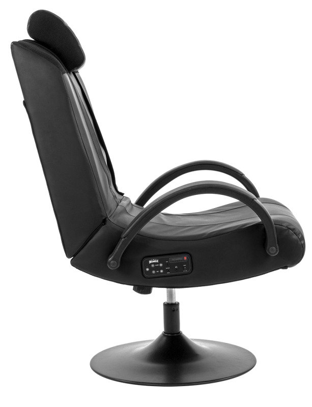 The speakers are controlled with a handy set of buttons on the side of the chair. There are two buttons to raise and lower the volume, two buttons to raise and lower the bass levels and a power button. On the control panel you can also find a headphone port, a power port and auxiliary port to plug your media device into it. The Xenta Pedestal Gaming Chair is compatible with all of your media devices including games consoles, gaming PCs and things like laptops and MP3 players and iPods.