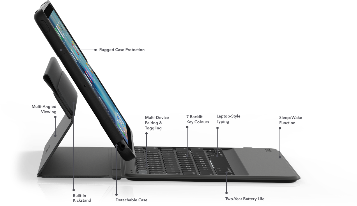 - Built-In Stand: Secure your device at multiple viewing angles, whether you want to work or just catch up on your favorite show.